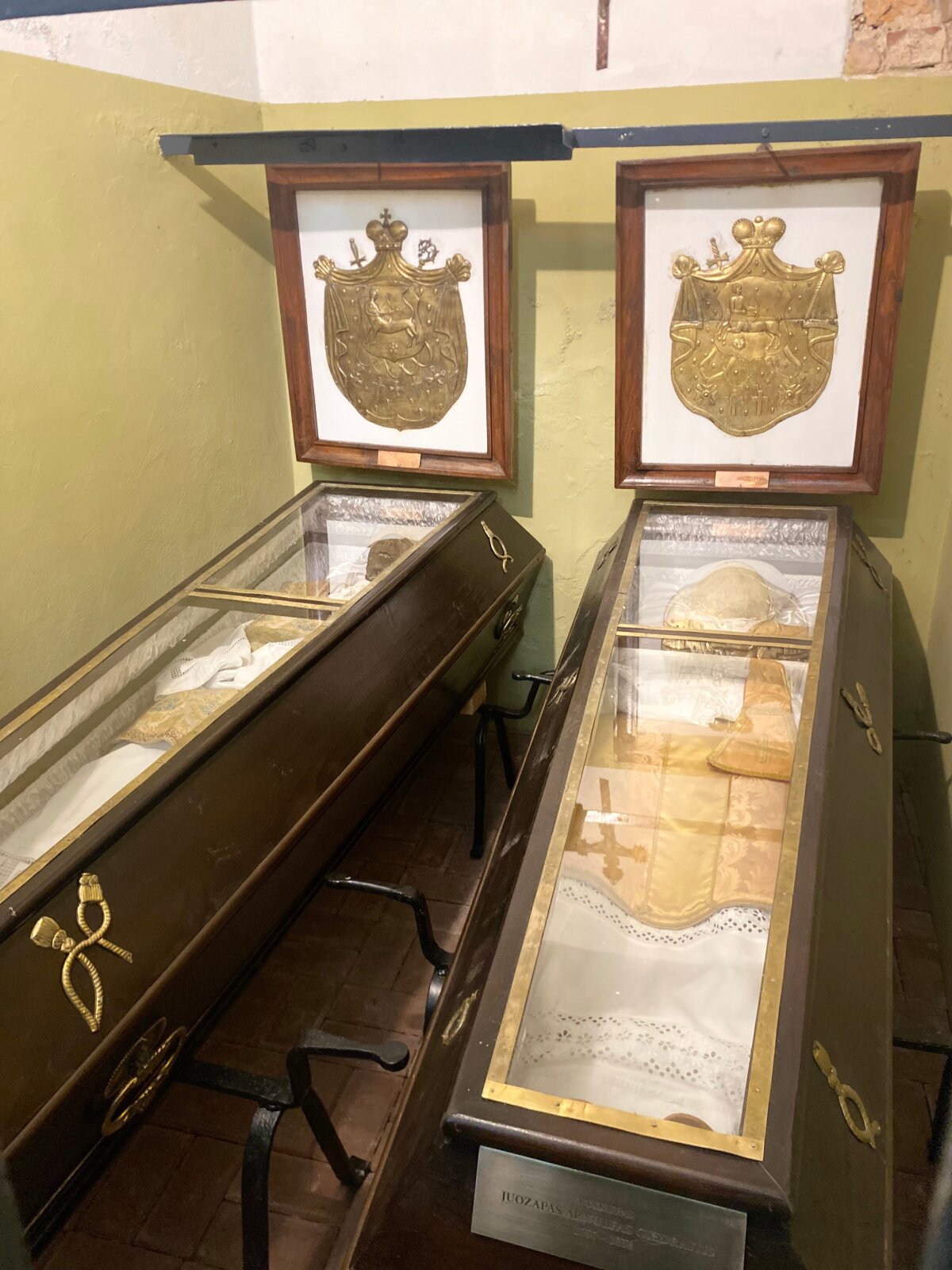 Neapsakomą įspūdį paliko barokinė Varnių Šv. apaštalų Petro ir Pauliaus bažnyčia. Po katedra aplankėme dvi Žemaičių vyskupų – Simono ir Juozapo Arnulfo Giedraičių – kriptas. Gidė parodė ir slaptąjį Motiejaus Valančiaus kambarėlį, kuriame spaudos draudimo laikotarpiu buvo spausdinami lietuviški raštai. Čia išvydome ir ypatingas relikvijas – mūsų vyskupo M. Valančiaus lazdą bei kailinius, kurie atlaikė net Sibiro šalčius.