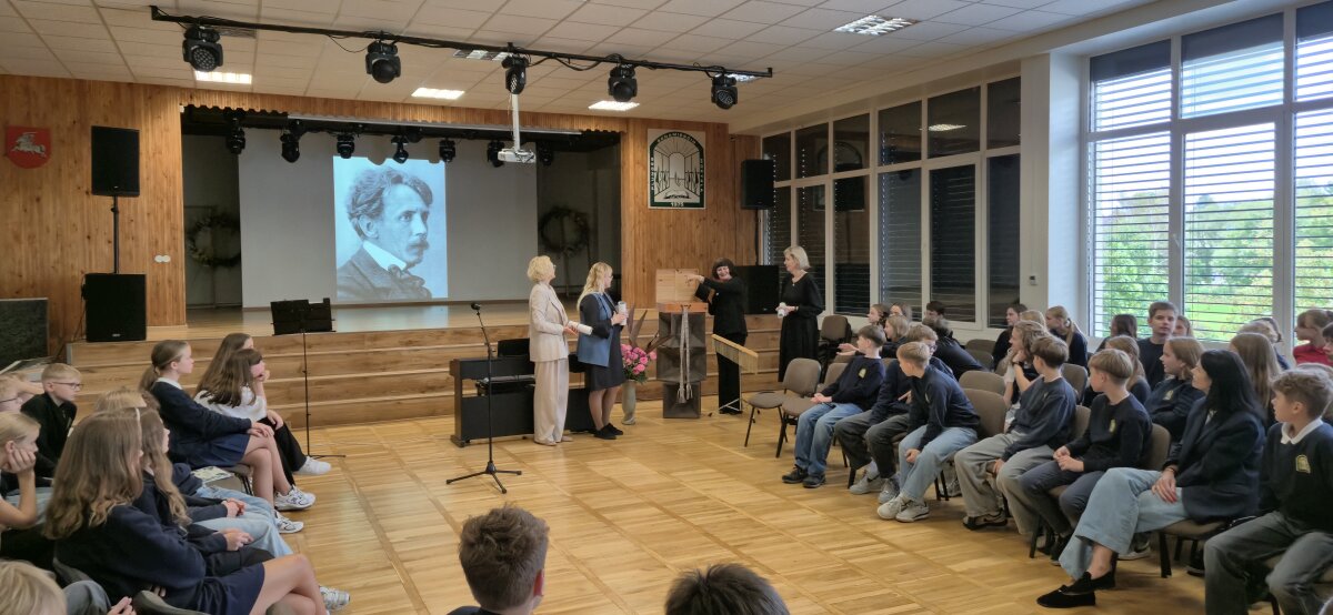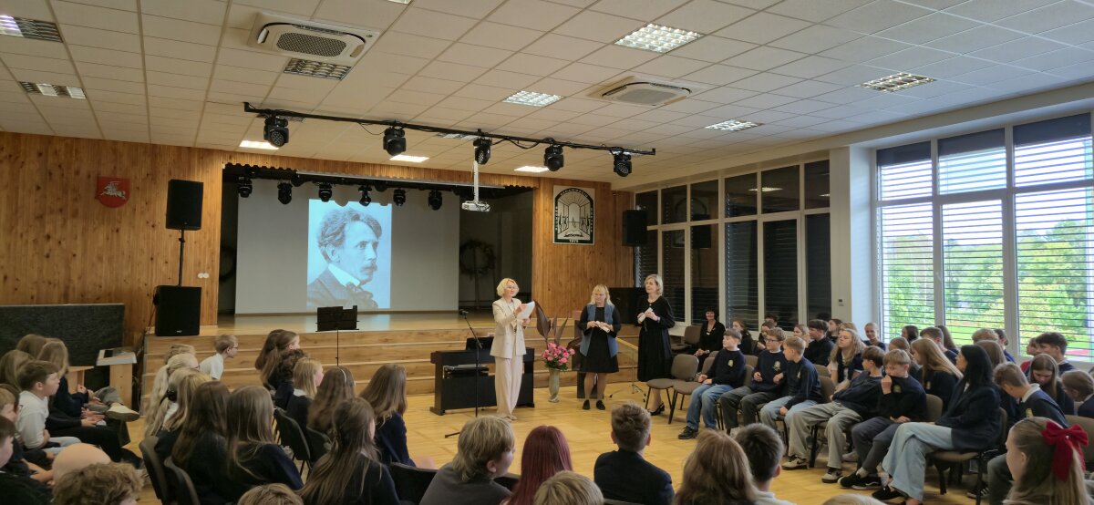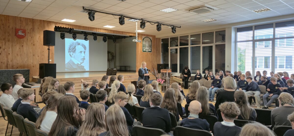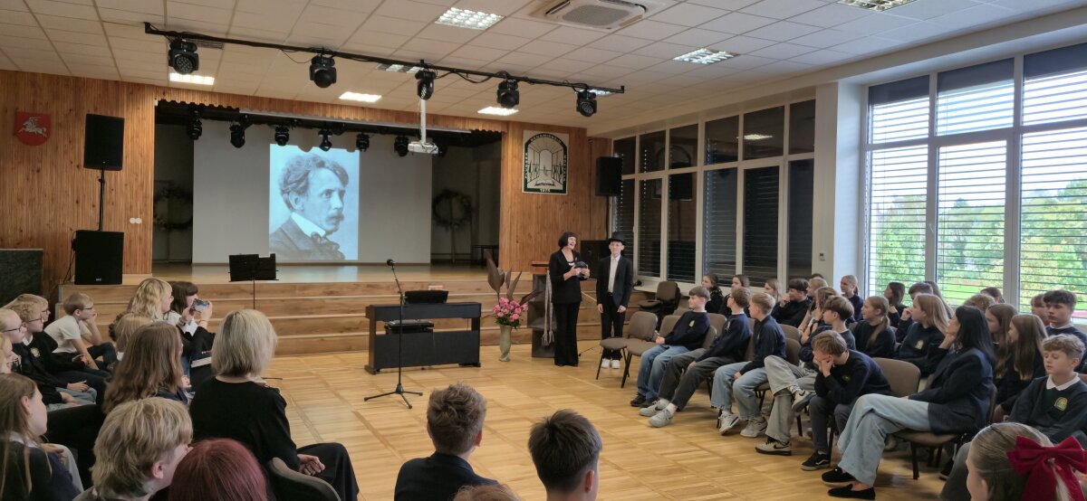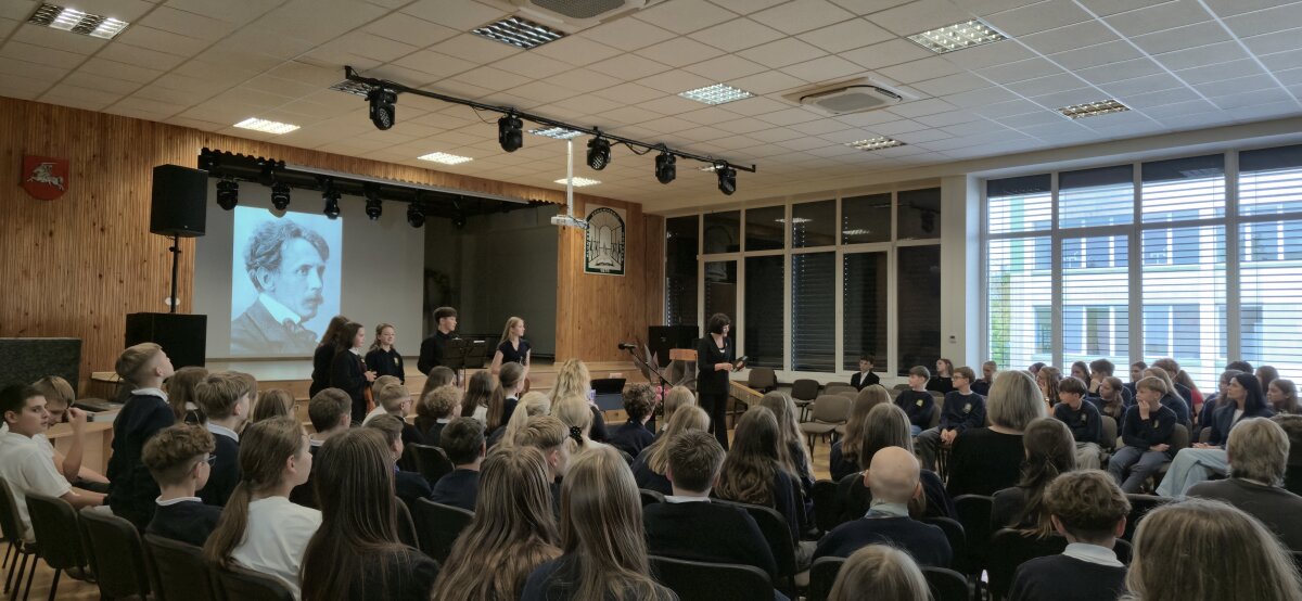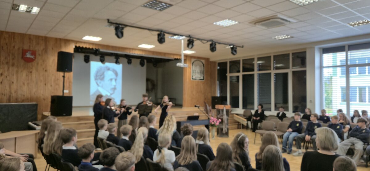 Mūsų mokykloje rugsėjo 22 dieną vyko integruota pamoka, skirta M. K. Čiurlionio gimimo metinėms paminėti. Muzikos, lietuvių kalbos ir literatūros mokytojos pakvietė visos mokyklos šeštokus į pamoką, kurioje mokiniai galėjo pajusti šio iškilaus menininko pasaulį iš skirtingų perspektyvų.