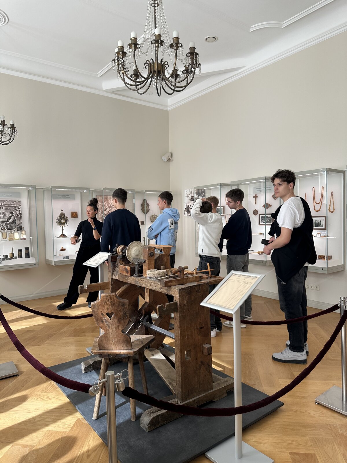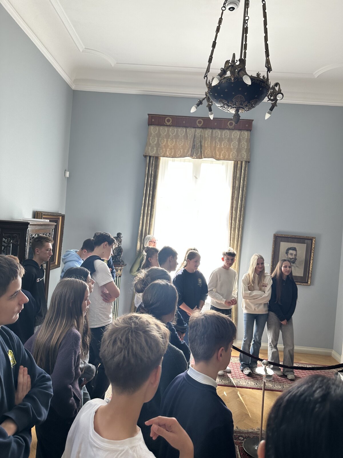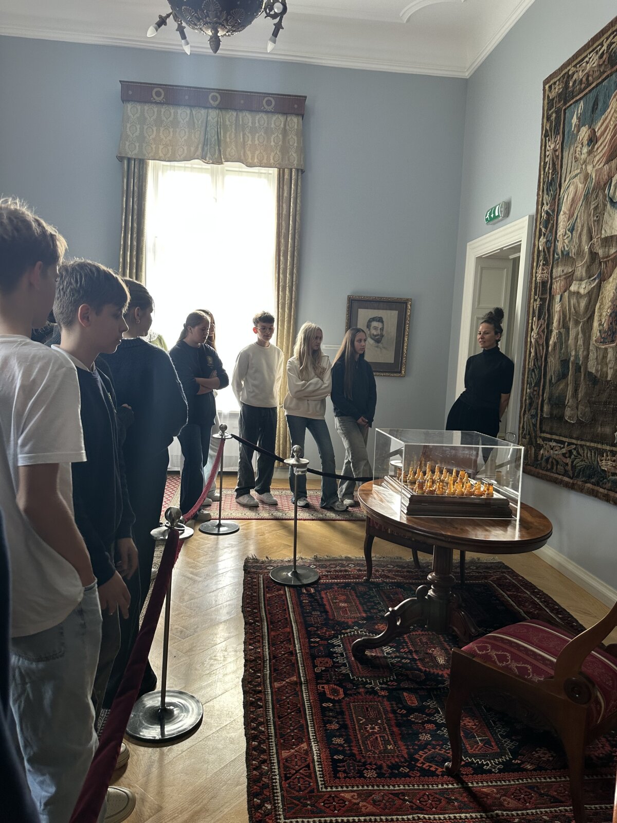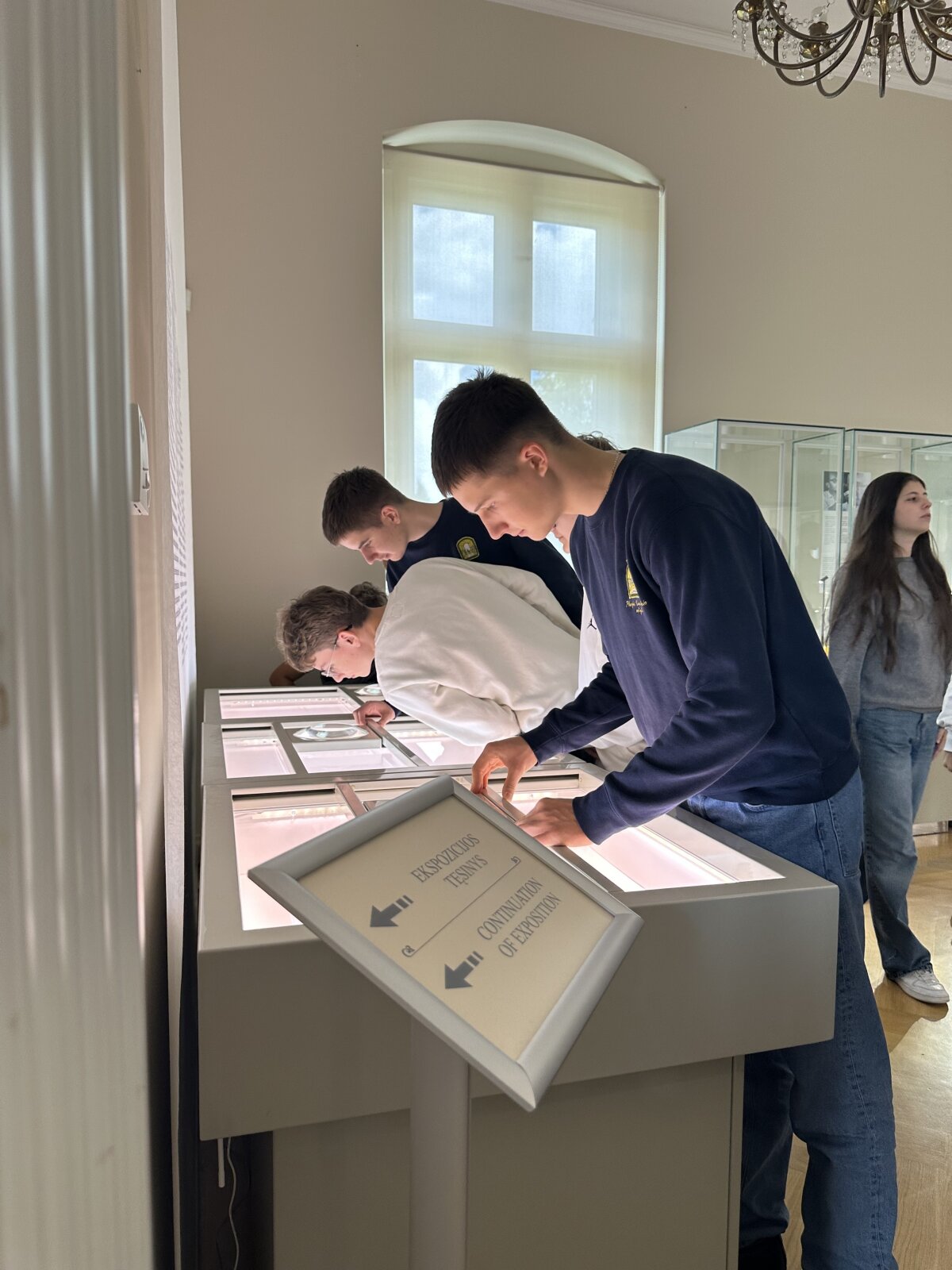 Rugsėjo 17 dieną mes, 8-9 klasių mokiniai, kurie mokosi prancūzų kalbos, dalyvavome edukacinėje išvykoje į Palangos gintaro muziejų. Atvykus mus pasitiko gidė, kuri vedė pamoką - ekskursiją po gintaro muziejų prancūzų-lietuvių kalbomis. Tema “Les appartements”. Gidė mus pagyrė už aktyvumą ir geras prancūzų kalbos žinias. Trys mokiniai, Justė Mačiuitytė, Mindaugas Girdenis ir aš, Aistė Laurinaitytė, buvome įvertinti dešimtukais. Kita užsiėmimo dalis reikalavo surasti nurodytus objektus parke, pateikti informaciją apie juos. Dirbome grupelėmis, buvo įdomu. O dabar mūsų laukia projektų pristatymas prancūzų kalba. Turėjome puikų laiką, įgijome kalbinės patirties.
