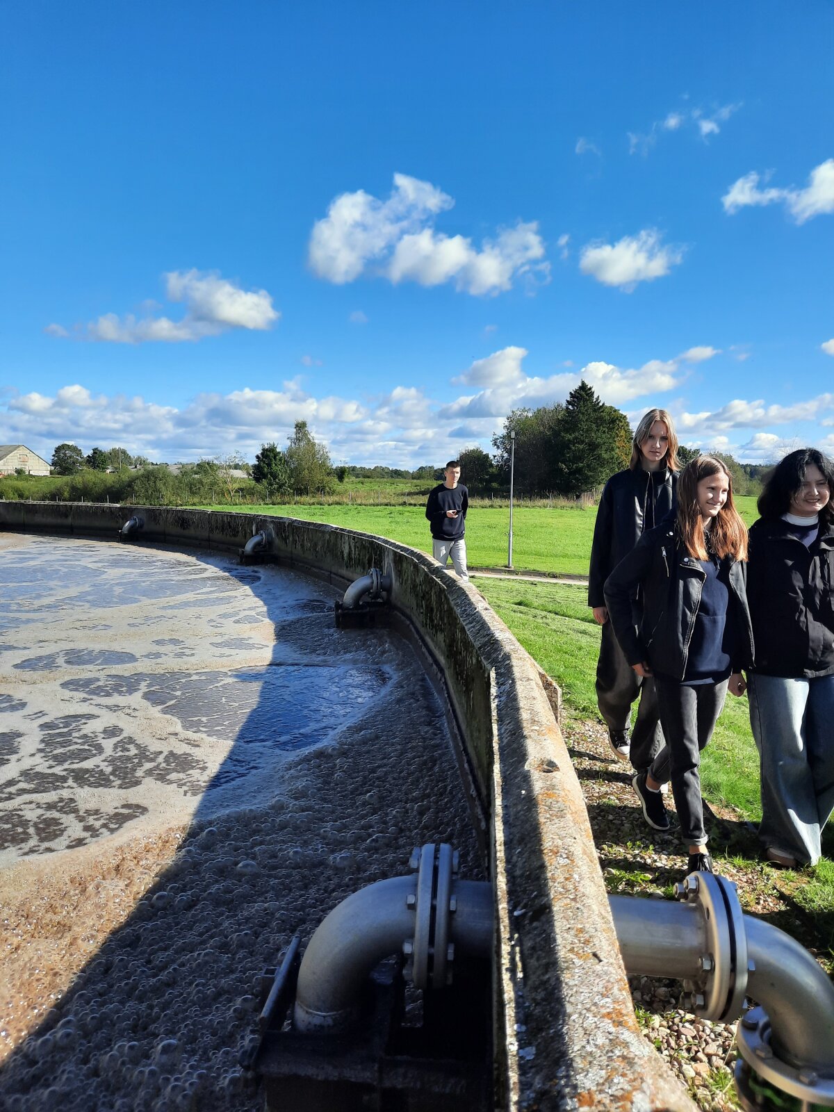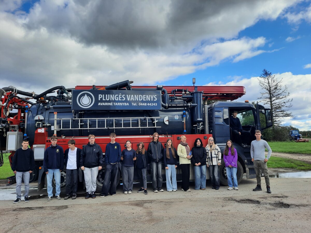 Rugsėjo 25 d. 10a ir 10b klasių mokiniai dalyvavo edukacinėje išvykoje į UAB „Plungės vandenys“ , kur susipažino su Plungės nuotekų valymo įrenginiais. Mokiniai išsiaiškino, kaip iš nuotekų pašalinamos stambesnės medžiagos (smėlis, riebalai, tepalai), kaip biologinio valymo metu mikroorganizmai, esantys reaktoriuje, suskaido ir maistui suvartoja nuotekose esančias organines medžiagas, kaip atskiriamas dumblas nuo biologiškai valytų nuotekų ir koks jo tolimesnis likimas. Laboratorijoje dirbantis specialistas papasakojo, kaip ir kur atliekami mėginių cheminiai tyrimai ir kokios kokybės išvalytas vanduo išteka į Sruojos upelį, o iš ten - į Miniją.