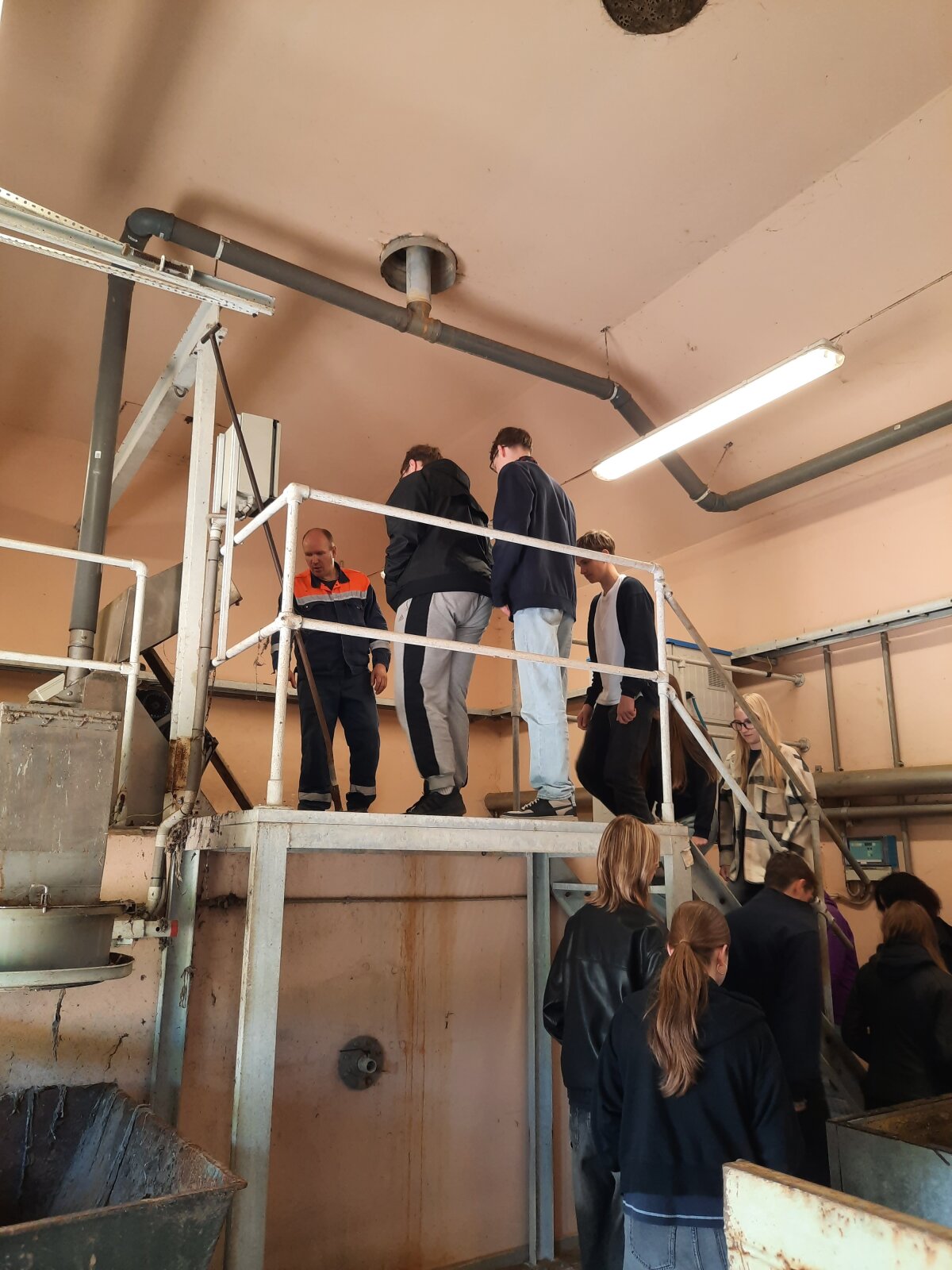 Mokiniai užsiėmimo metu ne tik apžiūrėjo įrengimus, bet ir domėjosi, kokių specialybių darbuotojai dirba šioje įmonėje.