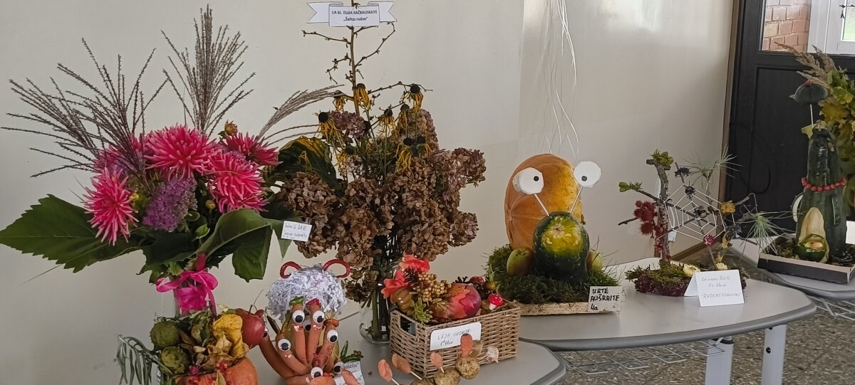 Ruduo – tai metas, kai gamta pasipuošia pačiomis ryškiausiomis spalvomis, o mūsų mokykloje šį grožį atspindėjo tradicinė rudeninių puokščių paroda. Mokiniai, kartu su tėveliais, kūrė spalvingas kompozicijas naudodami rudens gėles, vaisius, daržoves, lapus, uogas ir kitas gamtos dovanas.