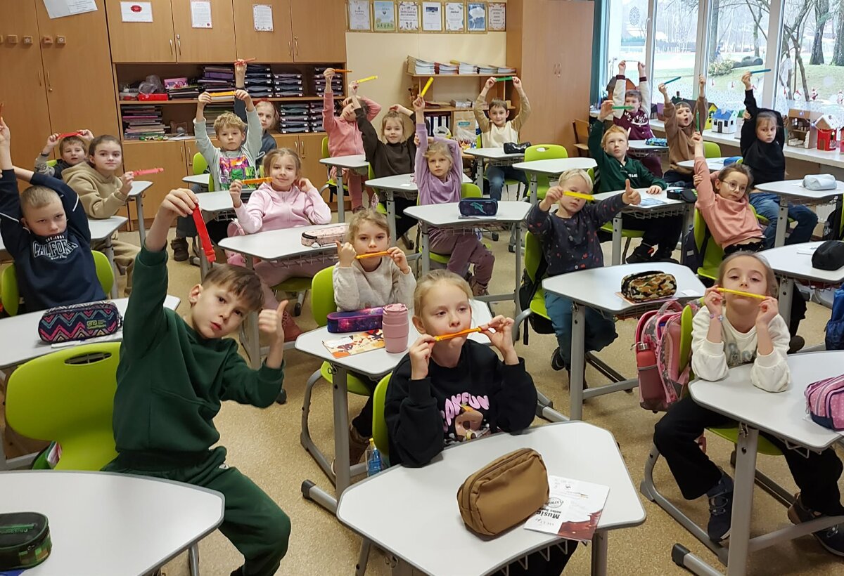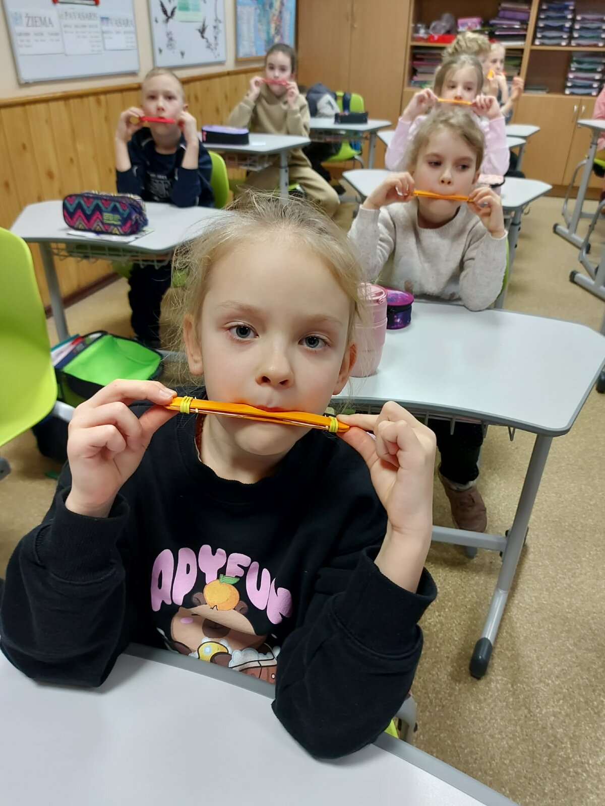 Mokydamiesi vieni iš kitų, smagiai bendraudami, antros 2a klasės mokinukai išmoko pasigaminti šį muzikos instrumentą. Visiems buvo linksma, kai grodami išgirdo skirtingus, keistus garsus skleidžiančius instrumentus.