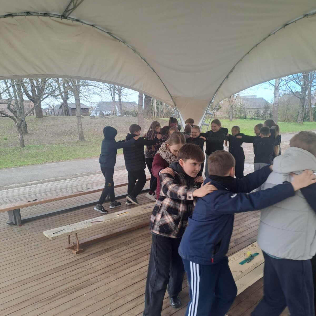 3c klasės mokiniai lietuvių kalbos ir matematikos pamokas organizavo ne klasėje, o kitose mokyklos erdvėse.