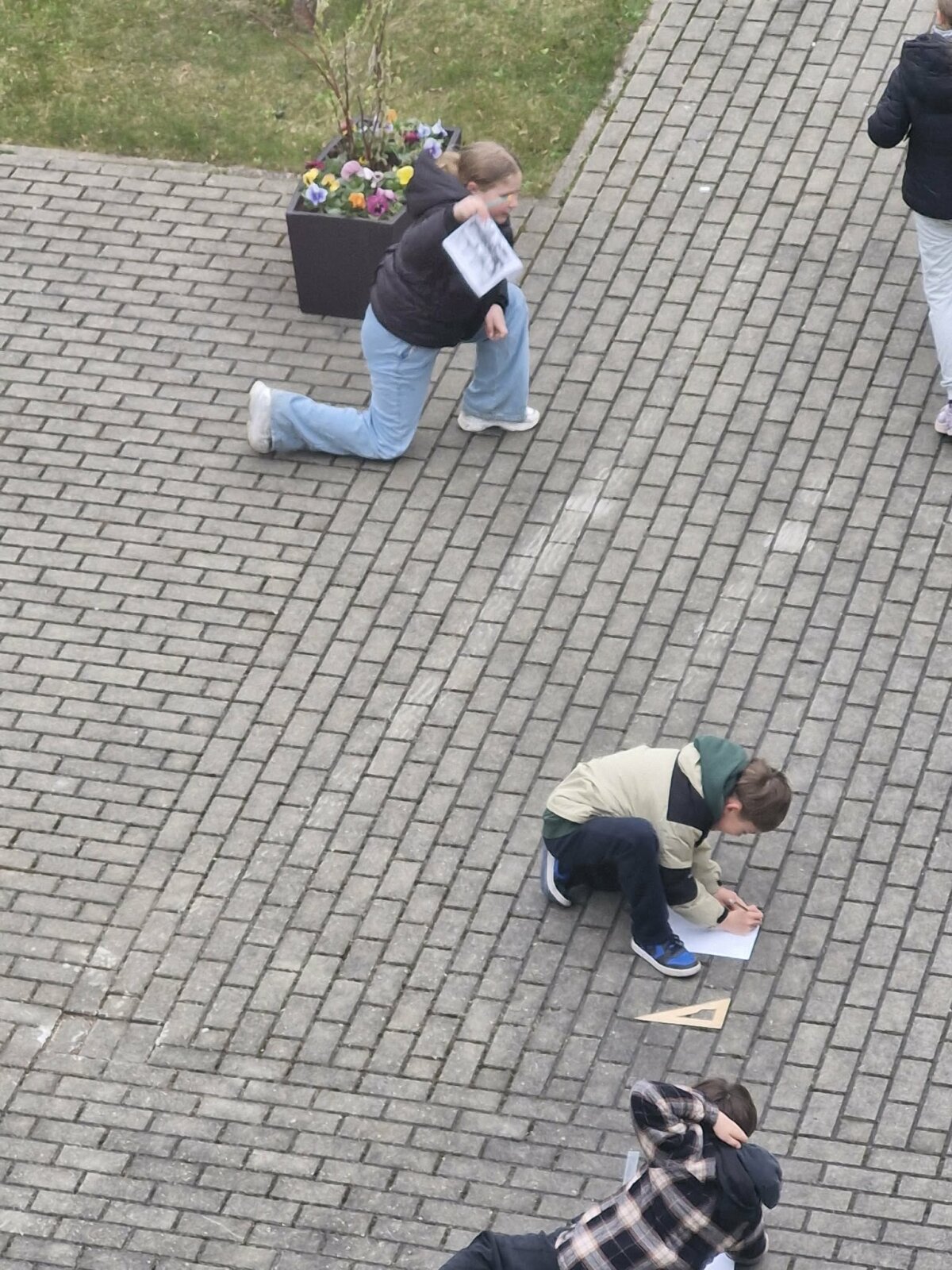 Pirmoji matematikos pamoka vyko vidiniame kiemelyje. Jos tema – „Matematika – tai žaidimas“. Mokiniai ieškojo kvadrato bei stačiakampio formos grindinio plytelių ir skaičiavo jų perimetrus. Vėliau keliavo į kupolą, kur atliko įvairias logines užduotis.