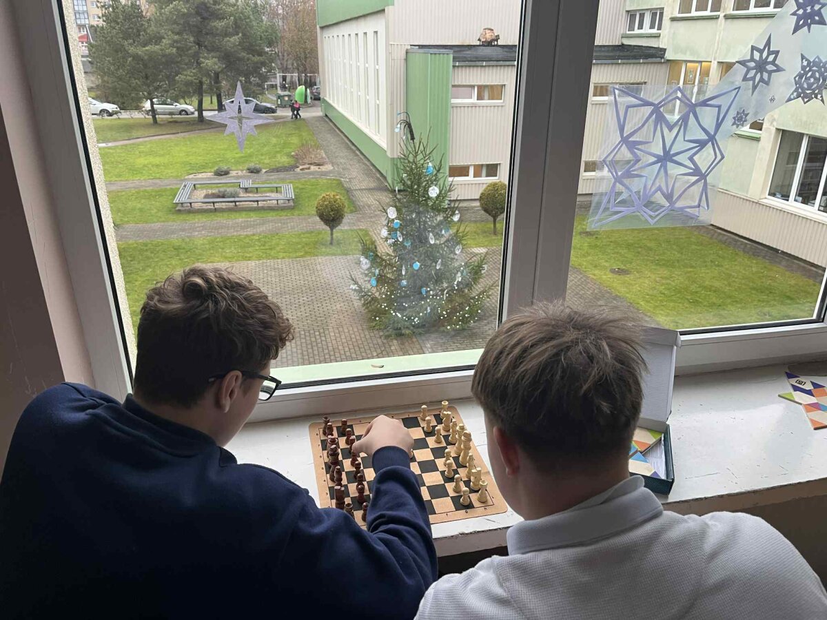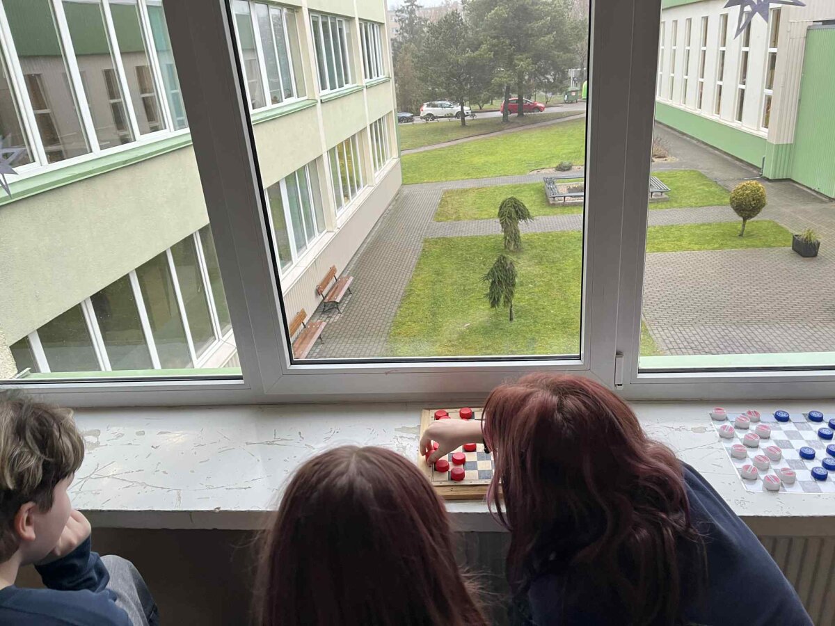 Pertraukų metu mokiniai vėl galėjo pažaisti įprastus žaidimus. Domino, šaškės, šachmatai, kryžiukai - nuliukai jau tampa tradiciniais žaidimais laisvu laiku tarp pamokų.
